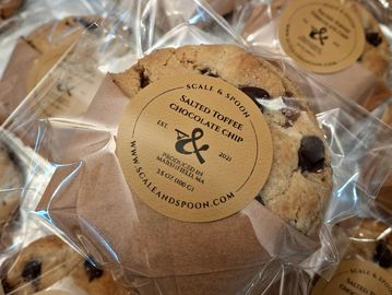 Brown butter, chocolate chip cookies with homemade Toffee, ending with a sprinkle of sea salt