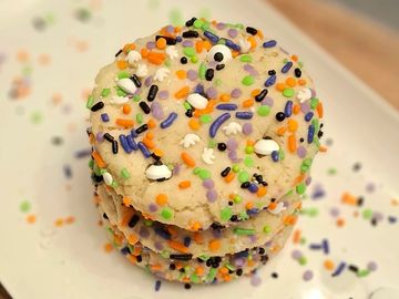 Perfect for Boo Baskets, Halloween treats or Spooky Parties! This 1/2 dozen mix includes Halloween Sprinklebwith spooky eyes, Festive Chocolate Chip and Cookies and Cream.