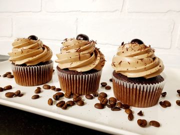 Our rich chocolate cupcake filled with Mocha Cream, topped with Mocha buttercream and a Chocolate covered Espresso Bean.